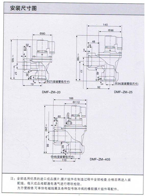 技術(shù)指標(biāo):工作壓力:0.4~0.7, 環(huán)境溫度:-10~55(℃), 使用介質(zhì):清潔空氣,膜片壽命:噴吹100萬次以上。